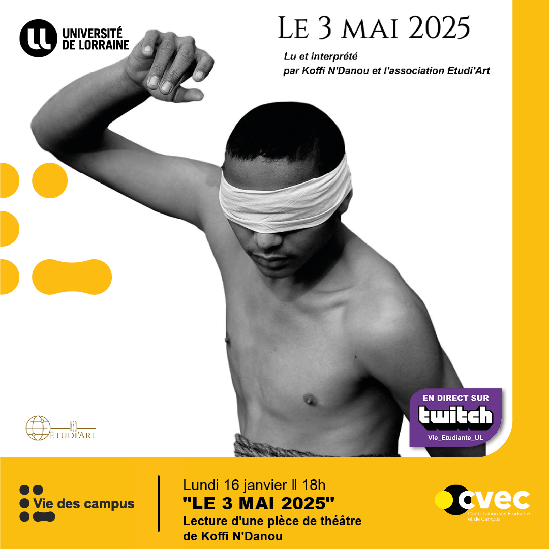 Un extrait de la pièce sera lu et interprété en live sur Twitch par des membres de l'assocation Etudi'art le lundi 16 janvier à 18h !
