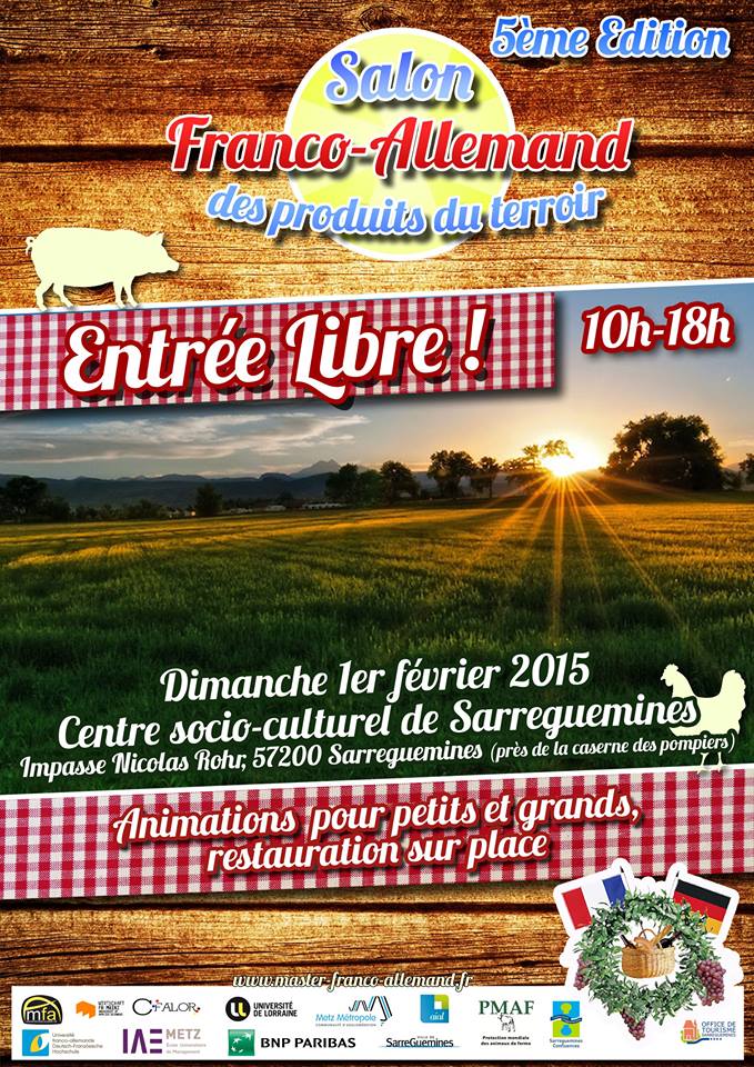 Depuis 5 ans déjà, le marché franco-allemand des produits du terroir, organisé par une équipe d’étudiants motivés, attire petits et grands gourmands. Ce marché a pour but de présenter des spécialités culinaires lorraines et sarroises.