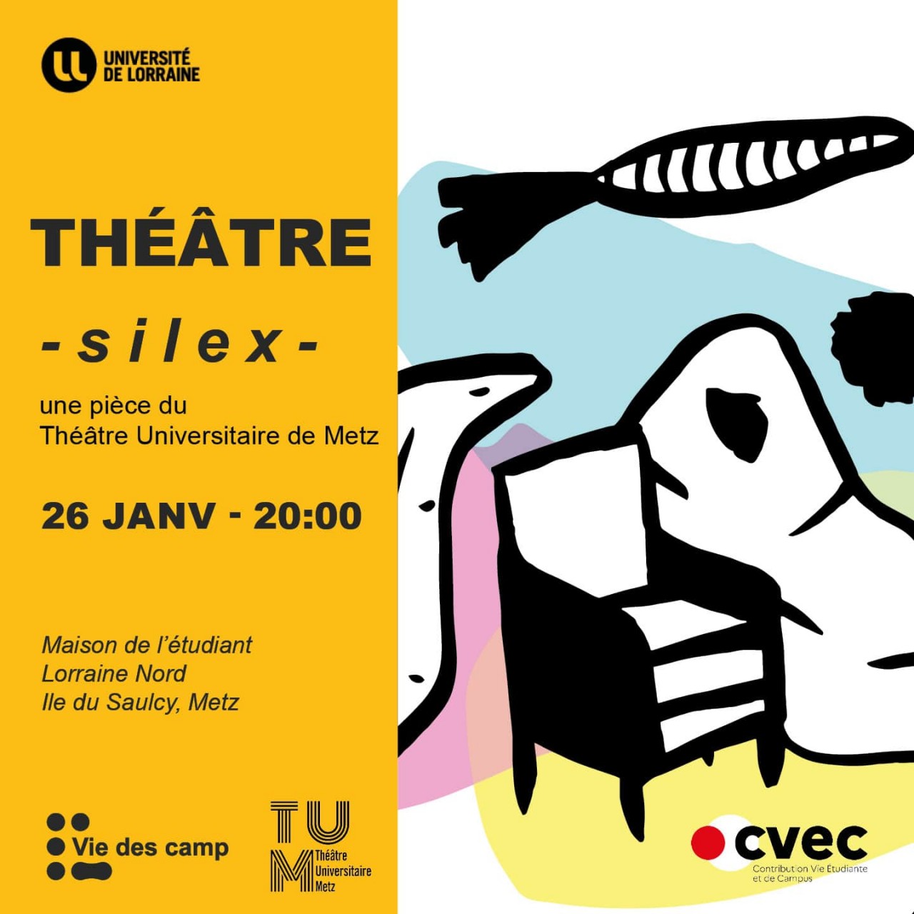 Réalisée par 6 etudiant.e.s de l’atelier hebdomadaire du Théâtre universitaire de Metz (TUM), S I L E X est le résultat de l’atelier de pratique théâtrale mené de janvier et juin 2022 dirigé par Nathalie Bonafé.