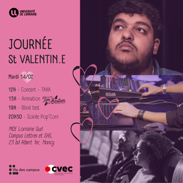 Pour l'occasion de la fête des amoureux, la Maison De l'Etudiant Lorraine Sud te propose une journée thématique avec pleins d'activités :