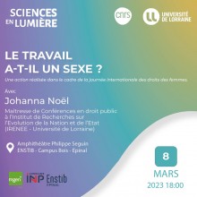 19h Echange avec le public et intervention de Johanna Noël, Maîtresse de Conférences à l’Institut de Recherches sur l’Evolution de la Nation et de l’Etat (IRENEE - UL). Accompagnée des témoignages de Manon Olivo, ancienne étudiante diplômée de l’ENSTIB, ainsi que de Camille Breteau, prévôt des Compagnons du Devoir et du Tour de France ainsi qu’une jeune apprenante.