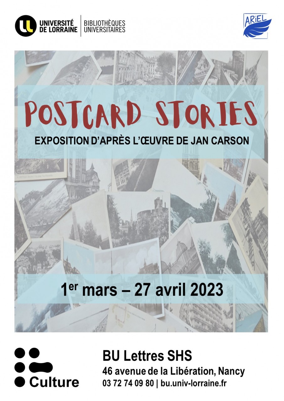Une sélection de ces Postcard Stories sont exposées à la Bibliothèque de Lettres & SHS de Nancy du 1er mars au 27 avril 2023.