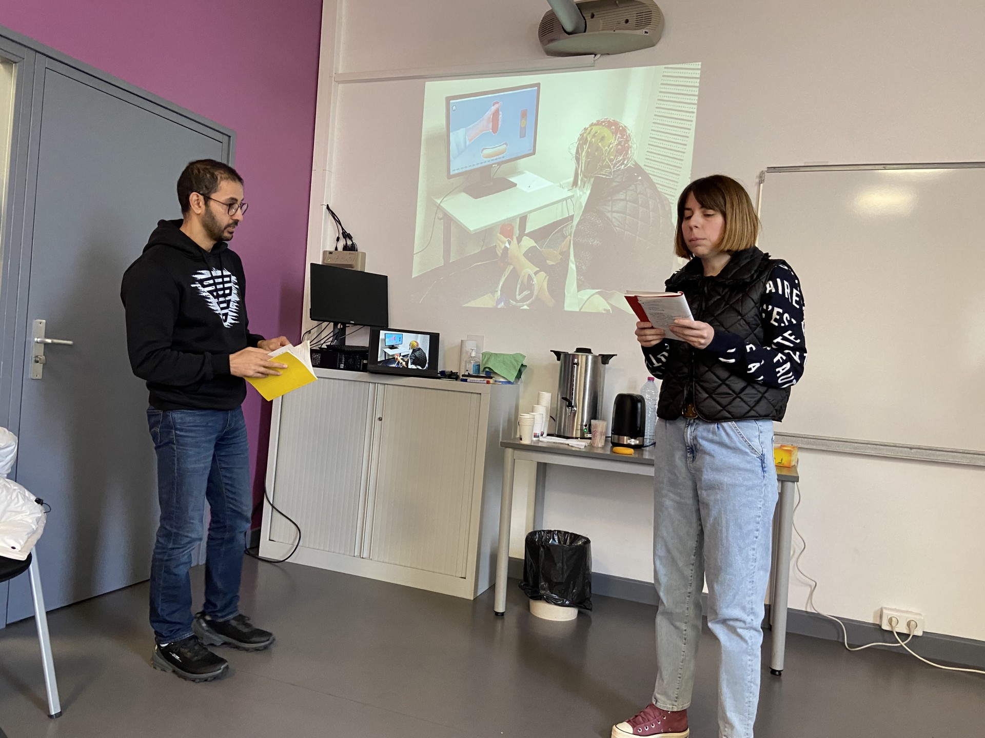 À l’issue de quatre jours en immersion au contact des professionnel·le·s de la recherche, les binômes ont réfléchi à un support qui permette de livrer leurs expériences à différents publics.