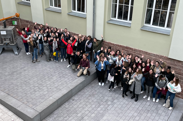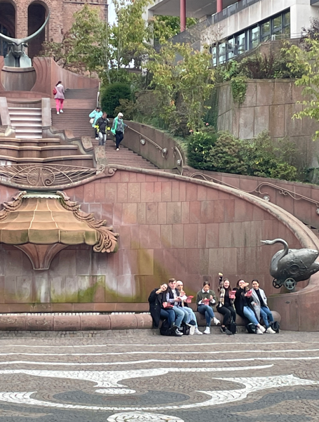 Les étudiants ont ensuite profité d’un quartier libre dans le centre-ville de Pirmasens. Certains ont déjeuné dans un point de restauration, tandis que d’autres ont sorti une collation de leurs sacs, assis dehors sur les premières marches du magnifique escalier de la Schlossplatz. Tout en riant avec ses camarades, un étudiant dira à l’enseignante accompagnatrice : « Madame, Madame, on fait de l’allemand décomplexé ».