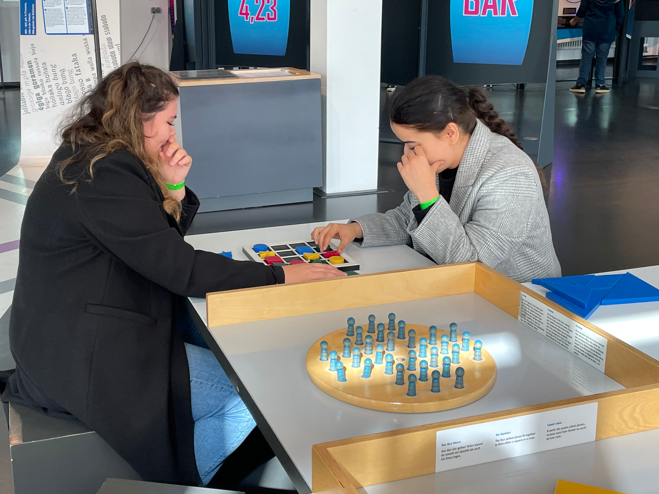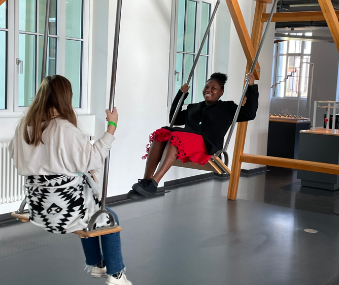 Grâce à la subvention accordée par l’Université de Lorraine dans le cadre de sa politique de soutien aux projets de développement de la vie universitaire, les étudiants de l'INSPE du campus de Sarreguemines ont visité le centre scientifique Dynamikum de Pirmasens, en Rhénanie-Palatinat. Ici, on manipule, on expérimente, on fait le plein de mouvement. Vite, vite, venez et tournez la manivelle, faites la course avec un crocodile, soulevez avec des leviers et poulies, balancez-vous, glissez sur les tobogans, tourbillonnez comme une toupie… Au Dynamikum, on manipule et on expérimente. Les étudiants s’enthousiasment de suite, touchant à tout et se passionnant pour tout. Après un premier tour dans les différents ateliers du Dynamikum, ils doivent désormais s’attacher à comprendre les différents phénomènes physiques, tout en complétant un Kreuzworträtsel.