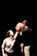 Dans un trio érotique et virulent, les sensations sont distordues et le dérangement naît de la relation fractionnée qui émane de ces trois protagonistes.