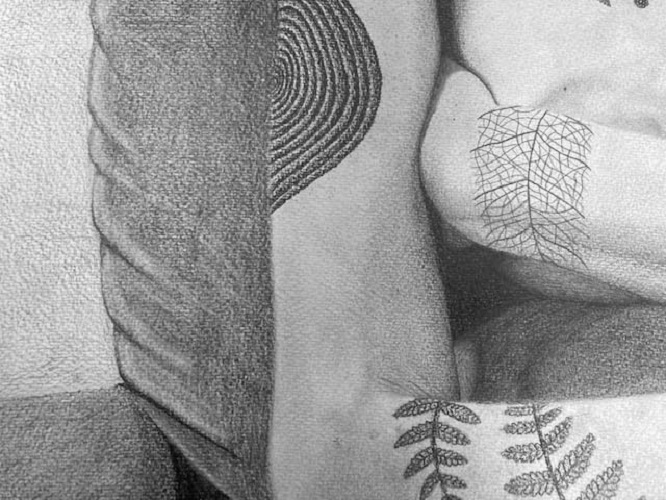 On connaît d’une part les propriétés thérapeutiques des plantes et d’autres part, la dimension de soin qui existe également dans le tatouage. La première partie de l’exposition investit cette relation et en propose une interprétation. À partir de dessins d’observations de feuilles, fleurs et autres végétaux, les motifs évoluent graphiquement, gagnent en sens et passent de la planche à la chair. Le processus de création élaboré ici métaphorise le travail des tatoueur•euses, qui pensent la transition du plat au volume et l’harmonie entre l’anatomie et l’élément graphique. À travers le dessin est exploré la manière dont les formes et textures végétales peuvent s’incorporer et entrer en dialogue avec la peau, son grain comme ses plis. Par les jeux de la métamorphose, la deuxième partie de l’exposition propose de se pencher sur les relations que l’être humain entretient avec la nature. Présentes dans de nombreux récits mythologiques, ces transformations de l’humain en animal, végétal ou minéral, étaient un moyen puissant d’explorer les relations entre l’humain et la nature, d’expliquer la complexité de l’existence humaine et les phénomènes naturels. Ainsi empruntée et réactualisée, cette thématique ouvre la voie au travail combinatoire et hybride de l’animation. De l’image arrêtée à l’image en mouvement, le dessin tente d’exprimer et de rendre visible les conditions et le temps de cette métamorphose où la figure de l’être glisse, progresse, fusionne et se change en une multitude de formes de la nature.