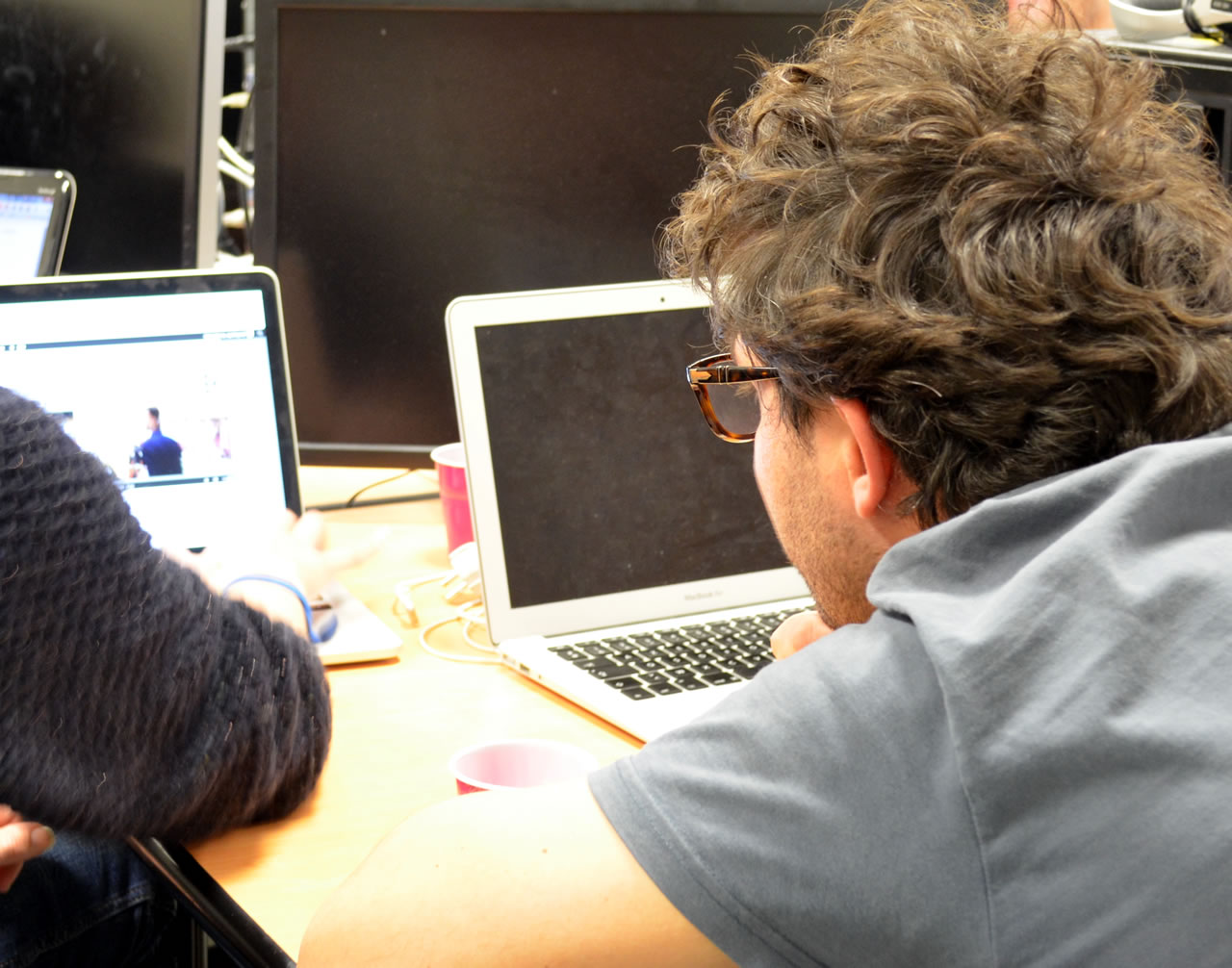 Cette semaine, Ludovic Blecher a travaillé pour la première fois avec les étudiants de master 1 qui vivaient leurs premières « 48 heures ». Durant deux jours, de 8h à 22h, la salle de cours du master se transforme en salle de rédaction numérique. Une dizaine de sujets ont été identifiés pour être traités en temps réel sous forme de brèves, de synthèses ou de véritables lives. Ludovic Blecher harangue, conseille… Avant de se mettre en retrait pour mieux observer : « on regarde ce qu’il faudra améliorer dans les heures et les mois qui viennent. J’ai participé au recrutement de ces étudiants. Maintenant, je me projette sur l’an prochain ».