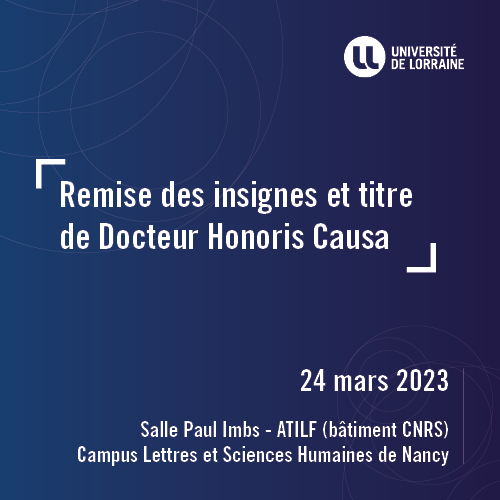 La cérémonie se tiendra à partir de 14h30 à la salle Paul Imbs située à l'ATILF (bâtiment CNRS), campus Lettres et Sciences Humaines de Nancy. Cette cérémonie sera suivie d'une conférence de Steven N. Dworkin intitulée : « L'étymologie romane : réflexions sur l'avenir d'une vénérable discipline ».