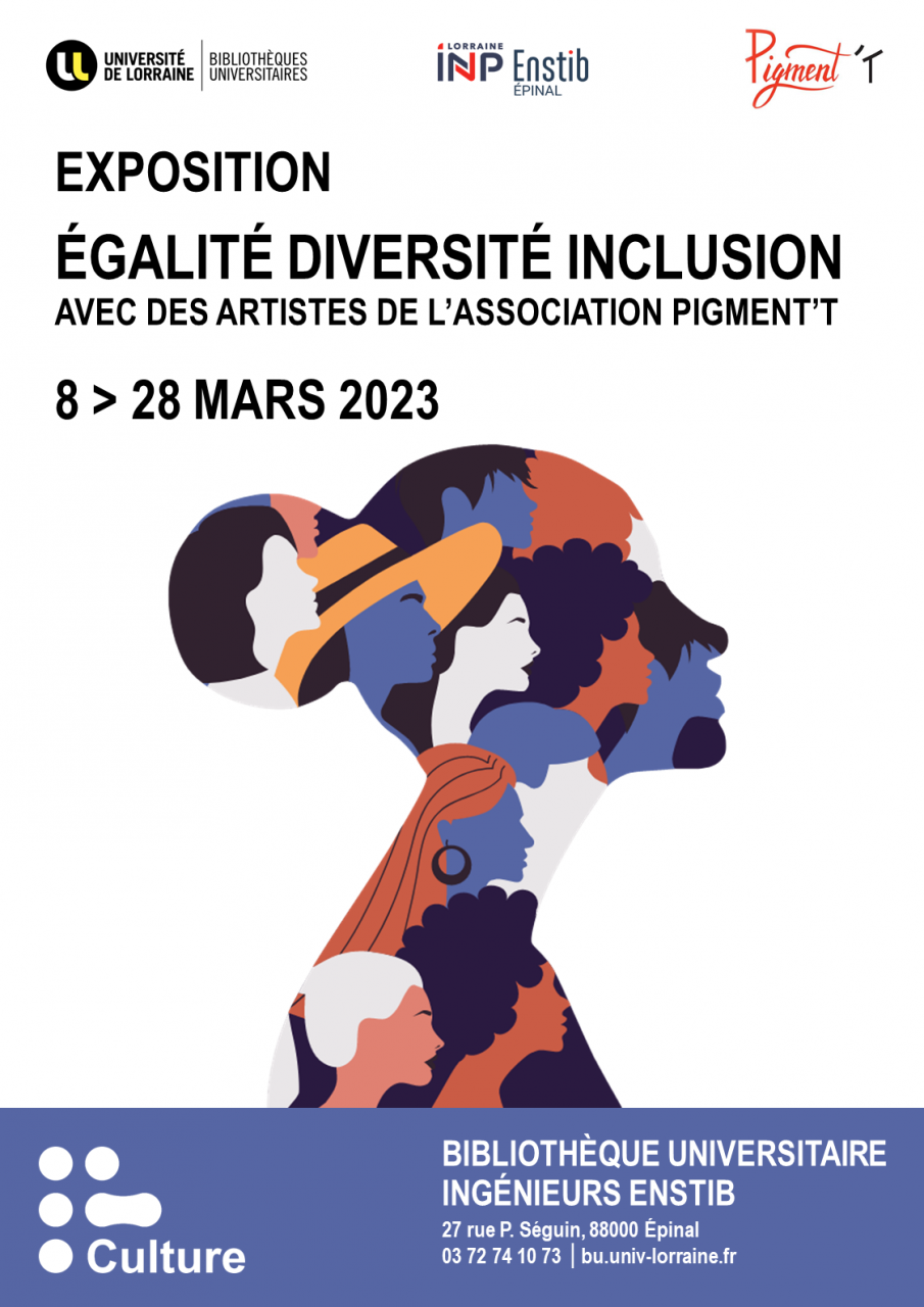 La bibliothèque universitaire Ingénieurs ENSTIB vous invite à découvrir les œuvres d’art de sept artistes de l’association Pigment’T d’Épinal. Peintures, sculptures, photos et textes sont mis à l’honneur du 8 au 28 mars 2023.