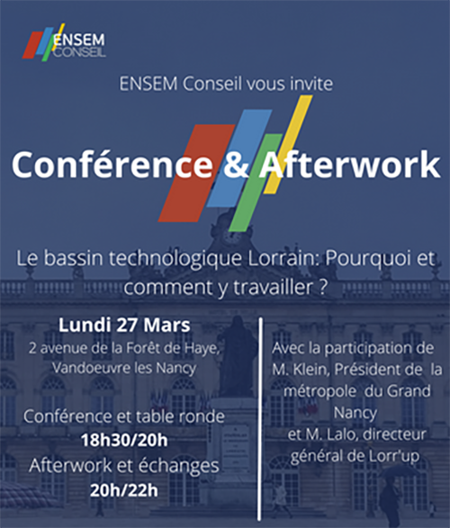 Organisés par ENSEM Conseil l'objectif de cette conférence et de cet afterwork est de promouvoir l'emploi Lorrain pour essayer de limiter l'exode de nos diplômés.