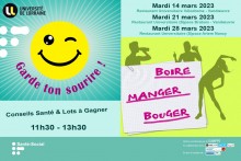 Le Service de santé étudiante (SSE) site Lorraine Sud de l’Université Lorraine, en collaboration avec la CPAM 54, le SUAPS, le CROUS, la MGEL/YVON, et avec le soutien de l’ARS et de la Région Grand Est, propose aux étudiants Lorrains de Nancy une campagne de sensibilisation et de prévention sur la double thématique « Boire Manger Bouger et Garde ton sourire ».