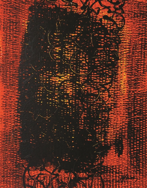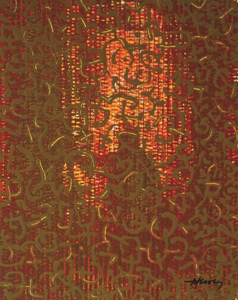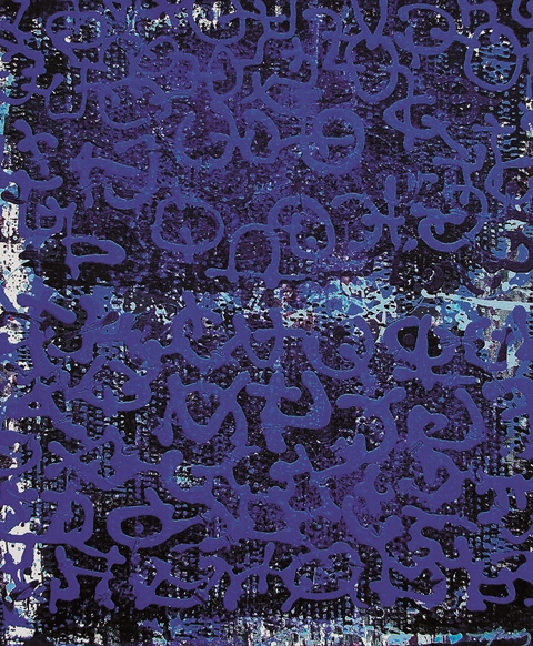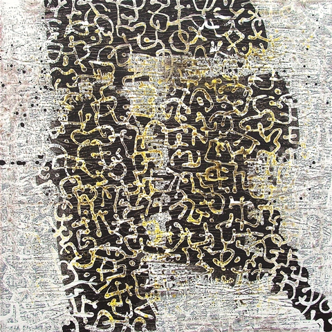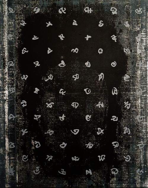 Equation de l’autre, géométrie du temps.Pages d’écriture nous racontent le monde à l’envers. D’étranges caractères y cherchent un appui ou une forme pour conjurer leur propre abstraction, caressent des lignes épaisses, colonisent un parchemin anthropomorphe s’épanouissent en arbre de vie. Poinçons, arabesques, boucles et anneaux repoussent les limites du tableau, cherchent le midi de la page, se rétractent, s’épanchent. Volubiles et pudiques, ils rejouent ce qui se fait et se défait dans l’écriture, le travail des Parques et des Tisseuses homériques, l'histoire d’un être en itinérance.De la trame au texte il n’y a qu’un pas. Il peut être très grand, et long comme un exil.