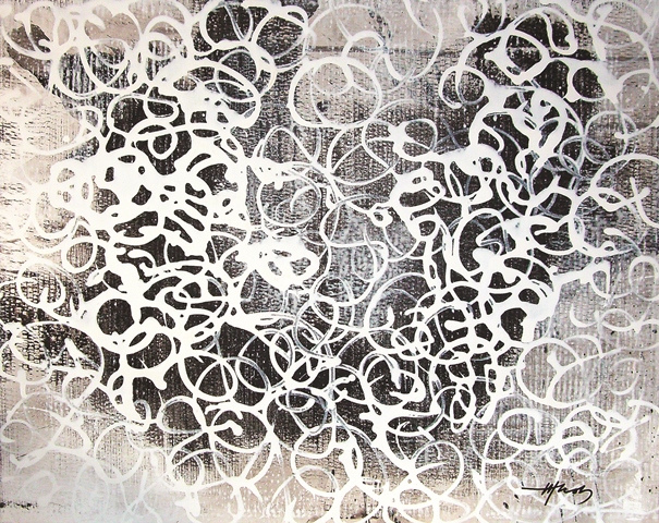 2012, l'année du changement. Suite à une fracture du genou, il explora un nouveau média : la peinture. À-plat de couleurs, matière surgissante, dripping explosif : l'abstraction des formes et la calligraphie se mêlent au langage visuel de son œuvre singulière.
