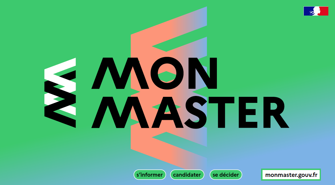Le site monmaster.gouv.fr est l’unique interface permettant la recherche de master et le dépôt des candidatures en première année de master dans les formations de son choix. Un seul dossier pour toutes ses candidatures, un calendrier unique de candidature.