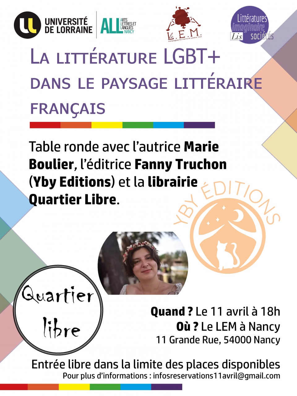 Les étudiants en première année de Master Lettres vous invitent à une table ronde autour de la question de la littérature LGBT+ dans le paysage littéraire français.