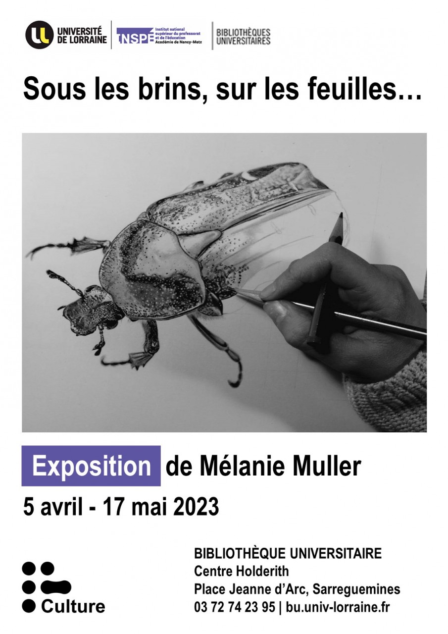À propos de son exposition "Sous les brins, sur les feuilles", Mélanie Muller nous livre « un monde invisible grouille sous nos pieds. Ils fourmillent, s'échinent, s'organisent... nous passons constamment à côté sans même les remarquer. J'ai voulu mettre en lumière tous ces artisans, indispensables à la bonne marche de la nature, en me penchant sur un espace de 4m2 pour révéler ces invisibles. »