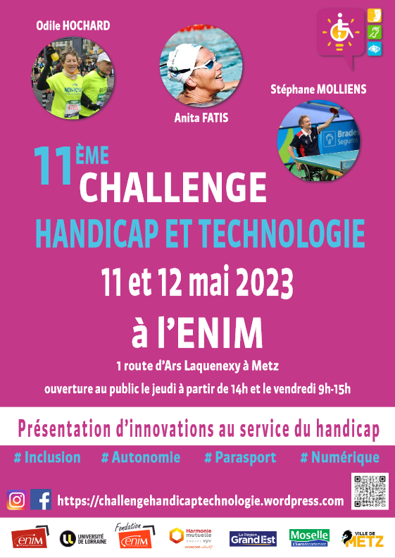 Le Challenge Handicap et technologies est organisé par l'association du même nom. Cette manifestation, pilotée depuis 2005 par Alain Delime, est reprise par une nouvelle équipe, composée principalement de membres de l’ENIM.