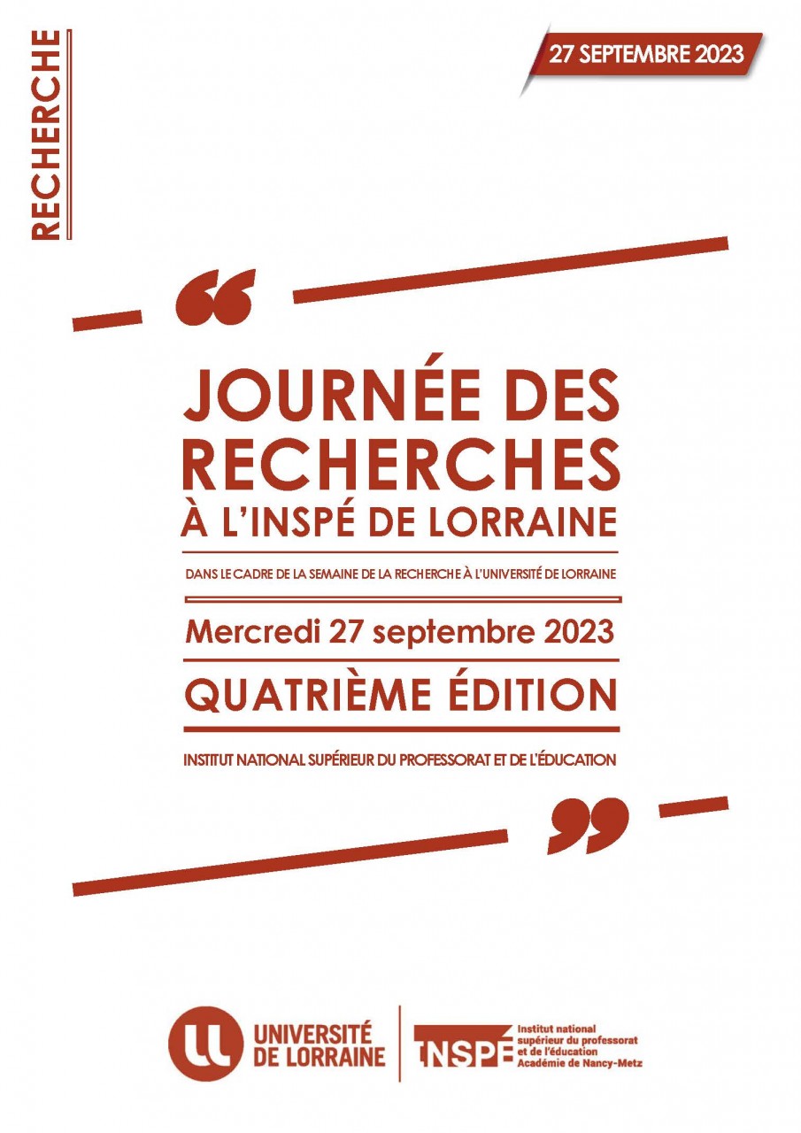 Pour en savoir plus, téléchargez le document en pdf ou RDV sur la page de la Recherche à l'INSPÉ de Lorraine : http://inspe.univ-lorraine.fr/recherche/la-journee-des-recherches