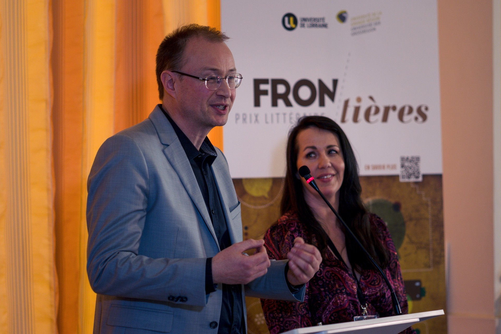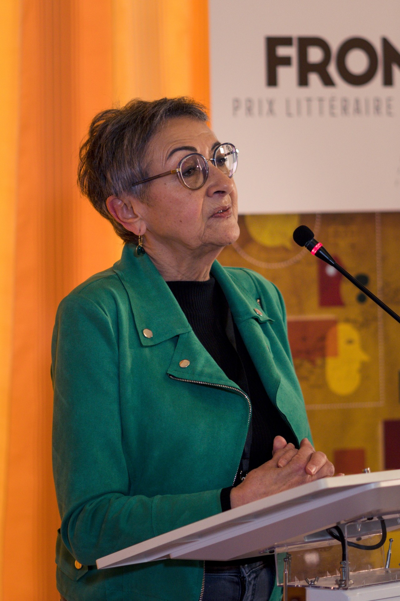 Je suis particulièrement honorée d'être ici présente pour signer l'attachement de l'Université de Lorraine à la vie culturelle, et dans le cadre de ce prix littéraire où le "concept" de frontière s'inscrit dans les gènes même de notre université. Hélène Boulanger