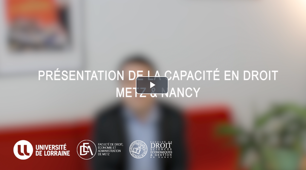 La capacité en droit (diplôme d'État, de niveau Bacccalauréat) permet d'acquérir des notions juridiques de base en droit privé et en droit public. À l’Université de Lorraine, elle est proposée par la Faculté de Droit, Économie et Administration de Metz et par la Faculté de Droit Sciences Économiques & Gestion de Nancy.