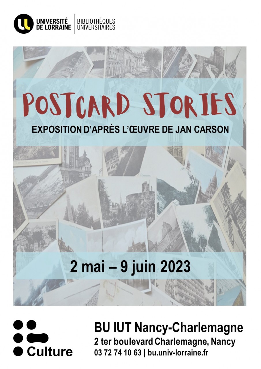 Une sélection de ces Postcard Stories sont exposées à la Bibliothèque américaine de Nancy du 2 mai au 9 juin 2023.