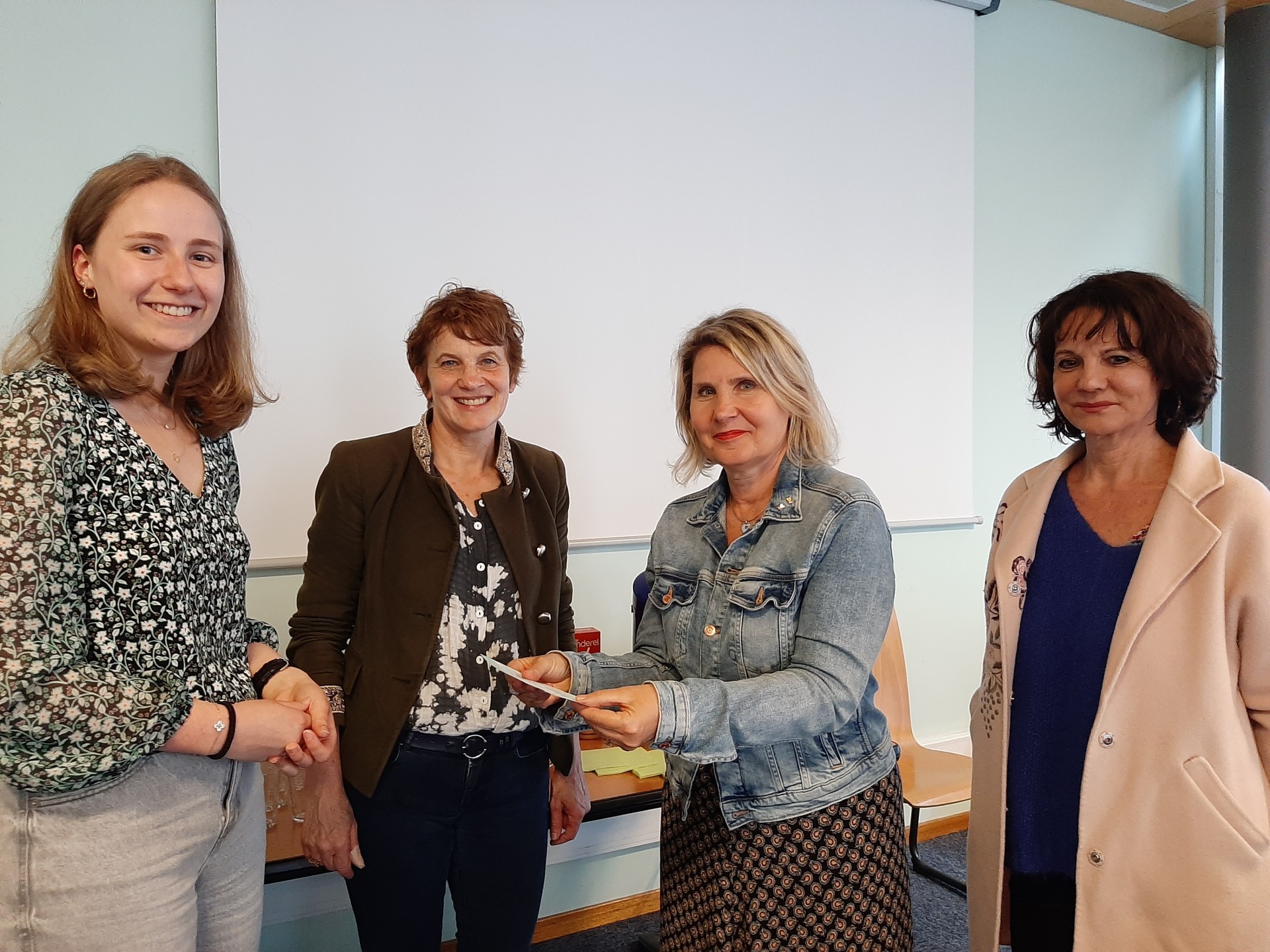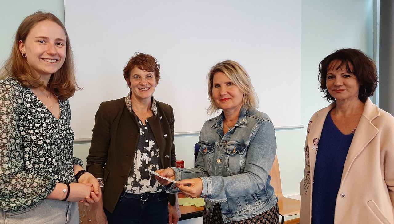 Les élèves du club Adelphe ont organisé une vente caritative (gâteaux, rubans, tote bags, pins) et ont souhaité reverser l’argent récolté à une association locale en lien avec les Violences Sexistes et Sexuelles.