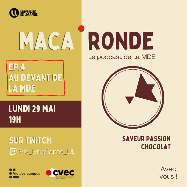 Pour écouter le podcast c'est ce lundi 29 mai à 19h ici : https://www.twitch.tv/vie_etudiante_ul