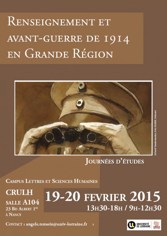 Pour cela, cinq thèmes propres aux Intelligence Studies ont été retenus, permettant de brosser un tableau du renseignement à la veille de la Première Guerre mondiale : le traitement des agents, la coopération entre services, le « Grand jeu » des services, la part du renseignement dans la planification et la législation applicable au renseignement. Au préalable, une approche de ce métier et de la Grande-Région permettra de fixer la spécificité de cette journée d’étude.
