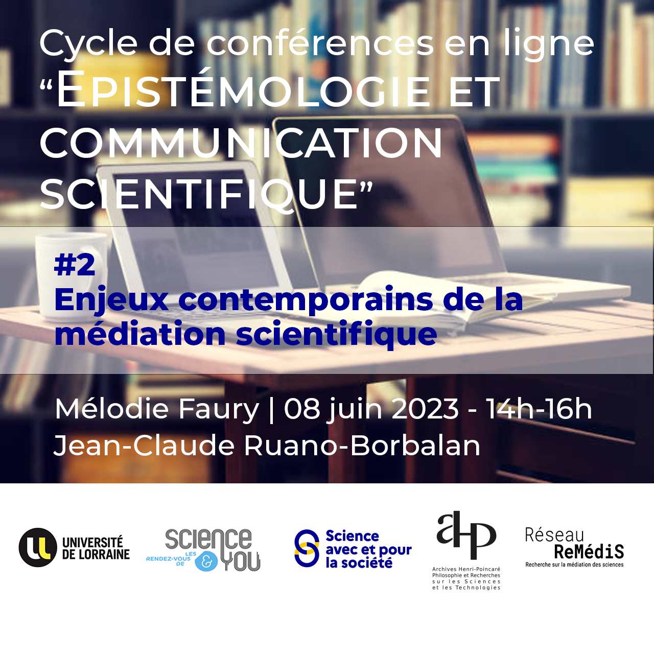 Les Archives Henri-Poincaré et le pôle Culture, Sciences avec et pour la Société de l'Université de Lorraine organisent depuis 2022 un cycle de conférences d'épistémologues, historien·ne·s, philosophes, sociologues, à destination des professionnel·le·s de la communication scientifique. Le but de ce cycle, qui entre dans le cadre des rendez-vous Science & You, est d'initier un dialogue entre les deux communautés, confronter des manières de penser, parler de, représenter les sciences.