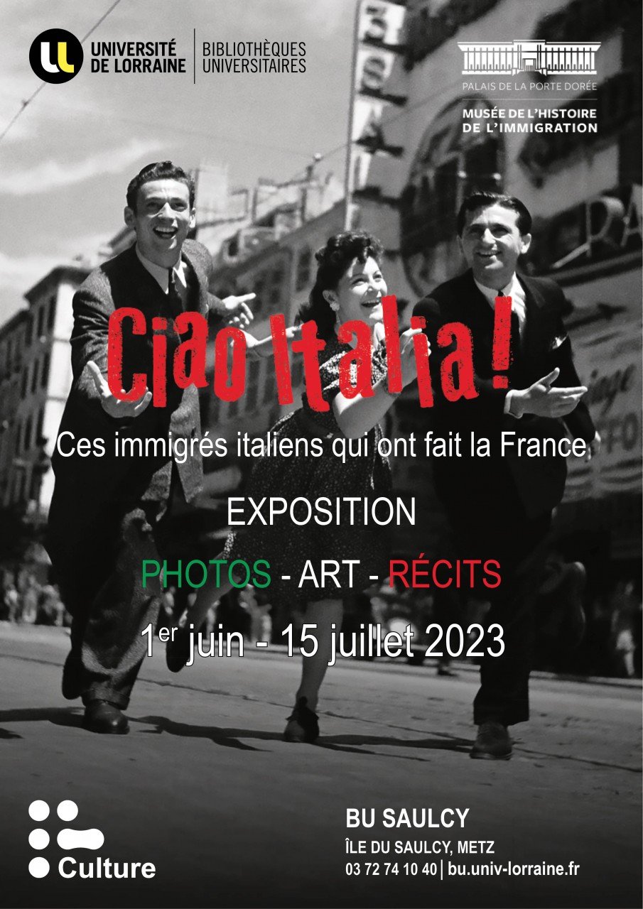 La bibliothèque universitaire du Saulcy propose l’exposition "Ciao Italia !", conçue par le Musée national de l’histoire de l’immigration et qui rend compte pour la première fois à l’échelle nationale, de l’histoire de l’immigration italienne en France, qui reste à ce jour la plus importante.