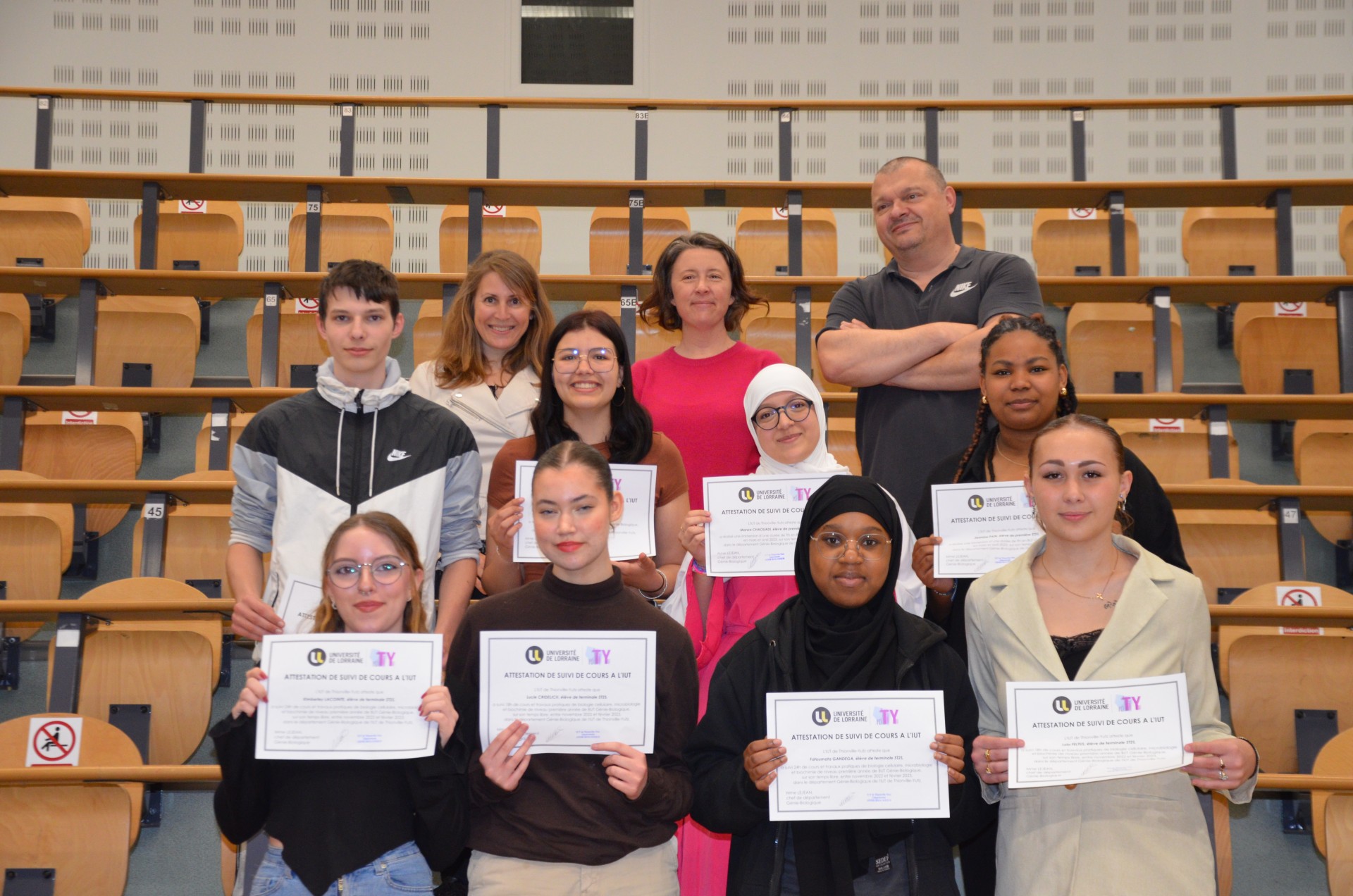 Ces lycéens motivés et volontaires ont été reçu à l’IUT le 10 mai dernier, en compagnie de leurs parents, afin de leur remettre une attestation de suivi des cours à l’IUT par l’administratrice du département Génie Biologique, Mme Marie Le Jean en présence de Mme Delphine Stègre, Mr Michael Schneider, Mr Becker (proviseur adjoint) et Mme Wagner (Directrice Déléguée aux Formations Professionnelles et Technologiques), du Lycée Rosa Parks. L’équipe enseignante souhaite avec enthousiasme reconduire cette opération à l’avenir !