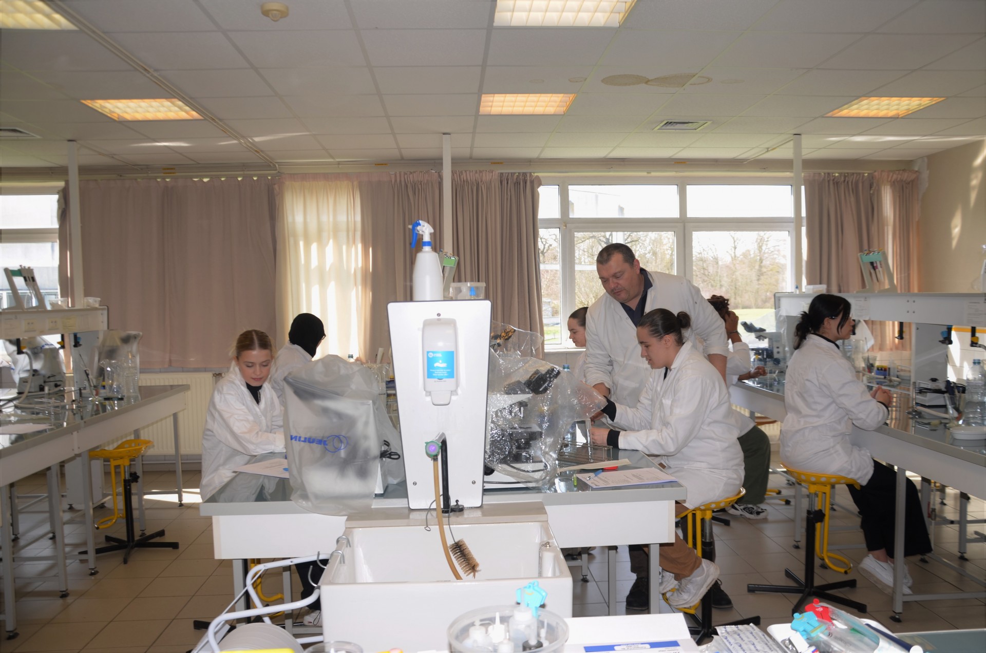 Des lycéens en classe de première et terminale ST2S du lycée Rosa Parks sont venus découvrir l’enseignement supérieur, au cours de travaux dirigés et de travaux pratiques de biologie cellulaire, microbiologie et biochimie. Ils ont pris sur leur temps libre, durant 3 et 8 mercredi après-midi respectivement, afin de préparer leur orientation, d’affiner leur projet professionnel et de prendre confiance en leurs capacités à s’intégrer dans l’enseignement supérieur. Au-delà des cours, ils ont pu découvrir le fonctionnement d’un IUT, échanger avec les enseignants et des étudiants élus qui leur ont également parlé de la vie étudiante et partagé leur point de vue sur la poursuite d’études.