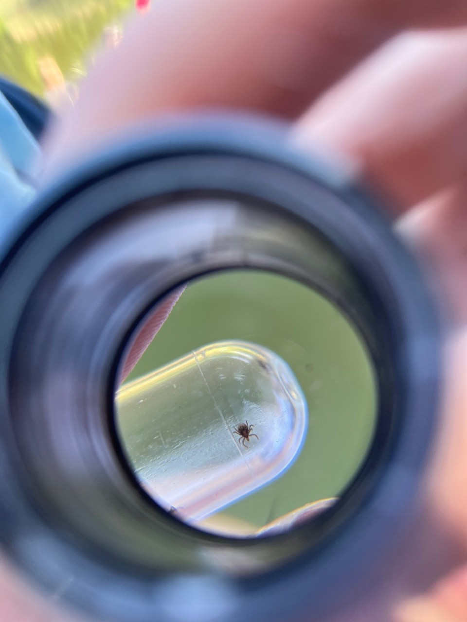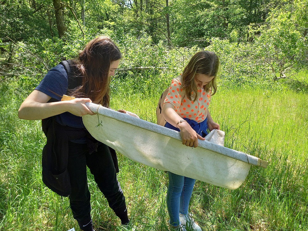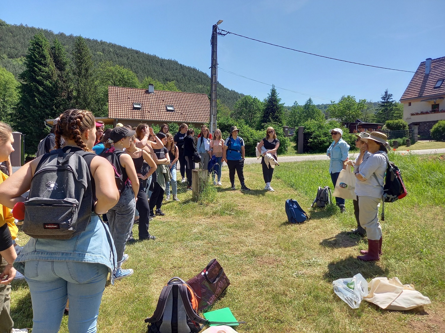 Les chercheuses du LIEC, Delphine Aran et Pascale Bauda, partagent leur expérience sur les habitats favorables aux tiques avec les élèves de terminale du Lycée Teyssier à Bitche. Lors d'une sortie terrain dans les environs d'Eguelshardt, les techniques de prélèvement de tiques et la caractérisation des habitats ont été pratiquées par une cinquantaine de lycéens. Puis une synthèse de leurs observations et récoltes de tiques (nombre, stade...) ont été confrontés avec les résultats des recherches menées dans le cadre de l'Observatoire Homme Milieux du Pays de Bitche.