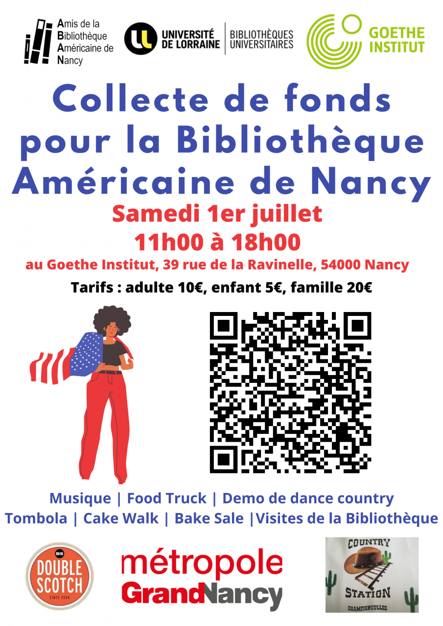 Le samedi 1er juillet 2023, en partenariat avec le Goethe Institut, l’association des Amis de la Bibliothèque américaine de Nancy (ABAN) organise sa première collecte de fonds « Independence Day Fundraiser » à l’occasion de la fête de l’Indépendance célébrée le 4 juillet aux États-Unis.