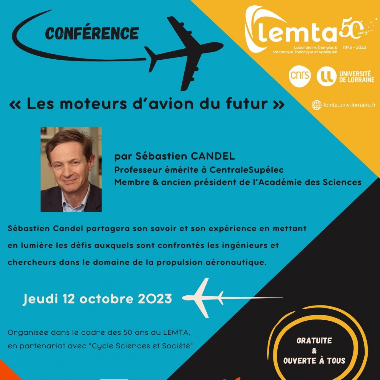 Dans le cadre des 50 ans du LEMTA(1), nous avons le plaisir de recevoir Sébastien Candel qui animera une conférence grand public intitulée « Recherches actuelles dans le domaine de la propulsion aéronautique et perspectives pour les avions électriques et à hydrogène ».