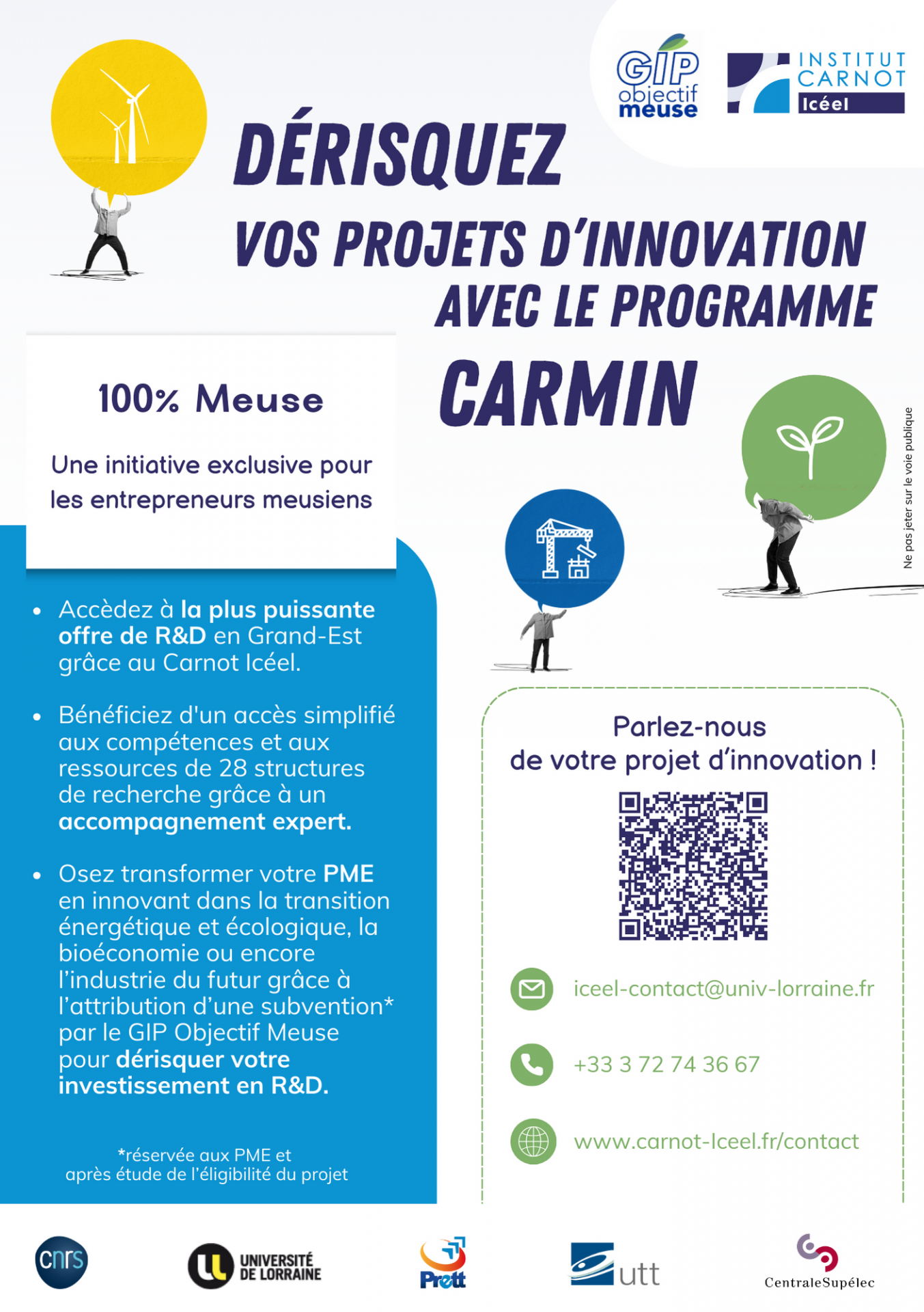 Le programme Carmin offre aux entrepreneurs du territoire Meusien une occasion unique de dérisquer leurs projets d’innovation, dans le but de relever les défis majeurs auxquels sont confrontées les entreprises de la région.