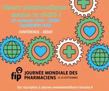 A l'occasion de la Journée Mondiale des Pharmaciens du 25 septembre prochain, la Faculté de Pharmacie - Université de Lorraine organise une conférence/débat sur le thème : "Déserts Pharmaceutiques : menace ou réalité ?" en présence de plusieurs de représentants ordinaux, professionnels étudiants et de l'ARS Grand Est.