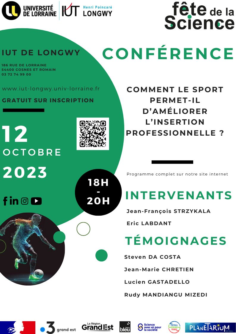 Dans le cadre de la fête de la science, l’IUT de Longwy organise une conférence intitulée “Comment le sport permet-il d’améliorer l’insertion professionnelle ?”