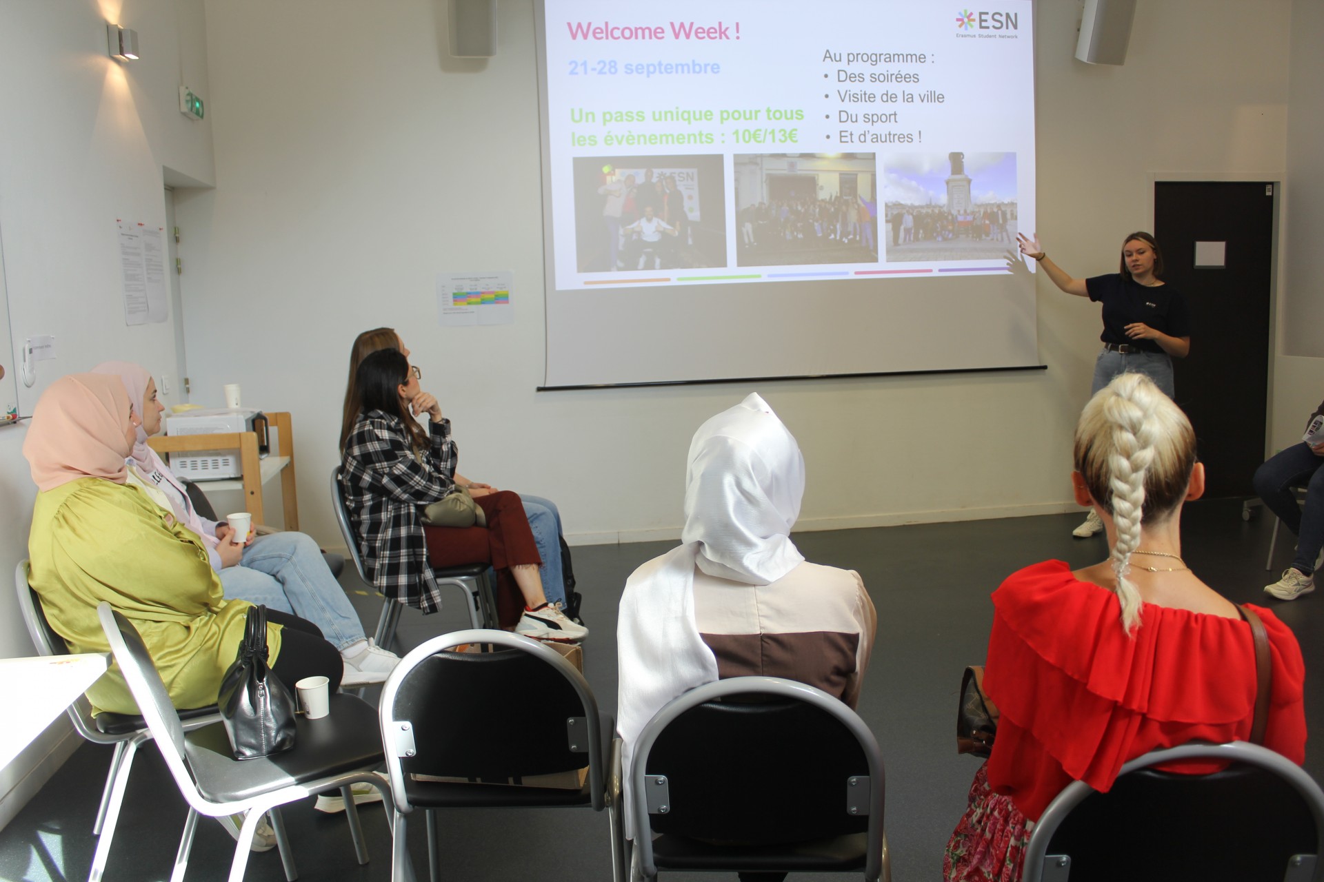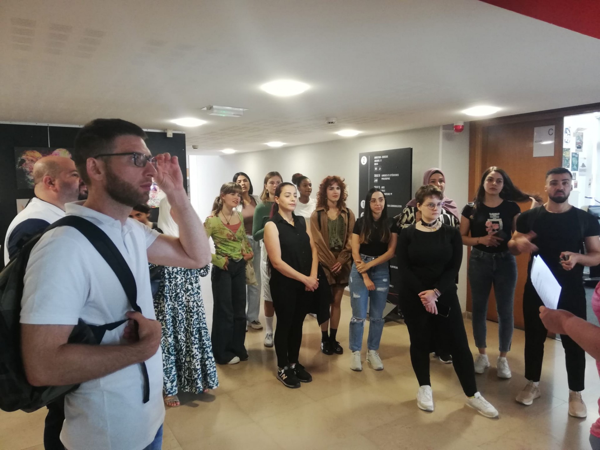 Après un petit-déjeuner convivial à la Maison De l’Etudiant où ils ont pu déguster des viennoiseries françaises, ils ont été répartis en quatre groupes et ont alterné toute la matinée dans différents ateliers : présentation des activités et événements de la MDE, atelier ludique animé par l’association ESN, atelier théâtre animé par le T.U.N. et visite du campus enrichie d’interactions avec le personnel de la BU, du SUAPS et du SSE, autant d’acronymes mystérieux pour des personnes non-francophones !