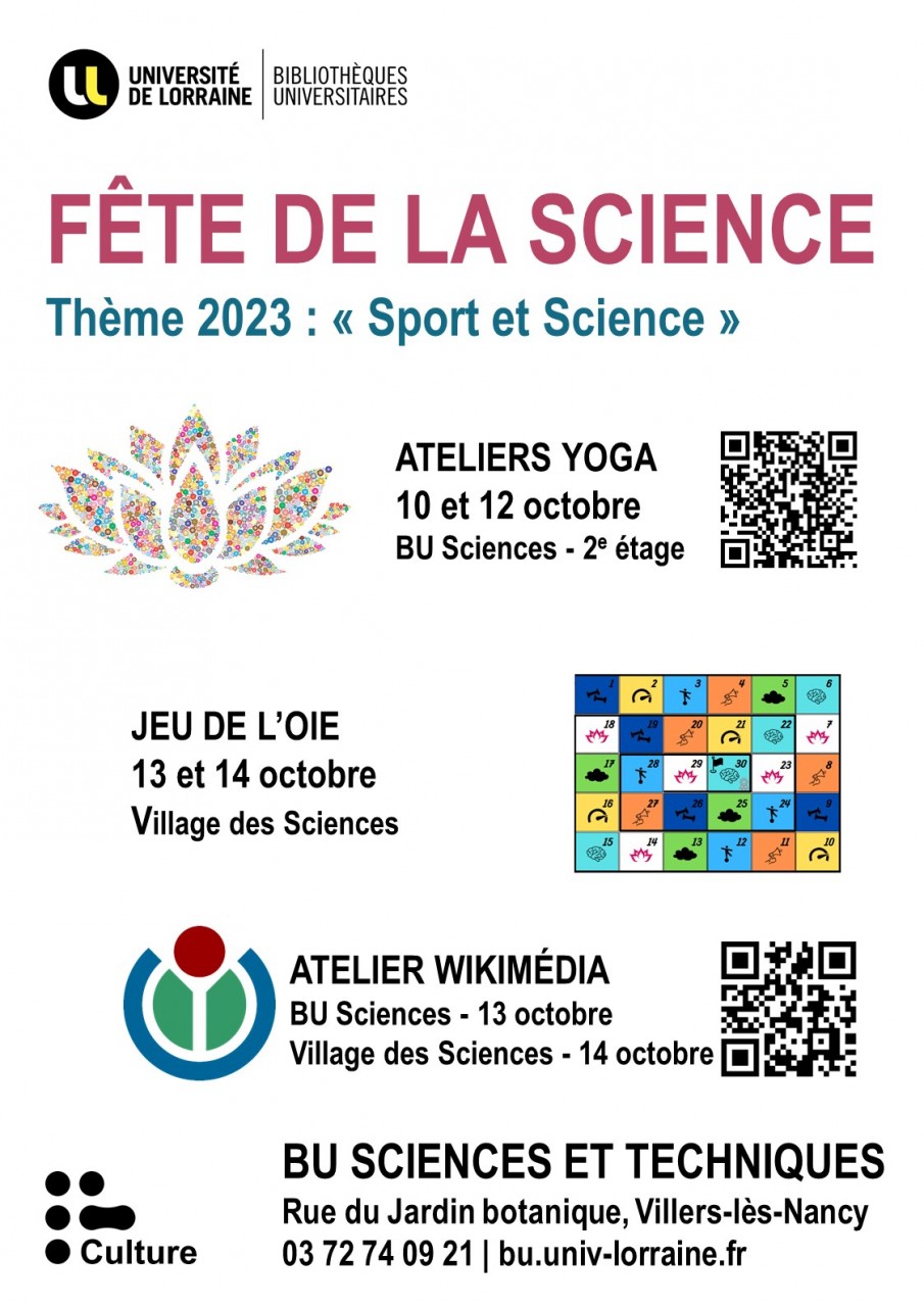 La faculté des Sciences et Technologies de l'Université de Lorraine organise le Village des Sciences, à destination de tous les publics. Cette année c’est le sport qui est mis à l’honneur. La BU Sciences et Techniques a donc le plaisir d’y participer avec plusieurs animations.