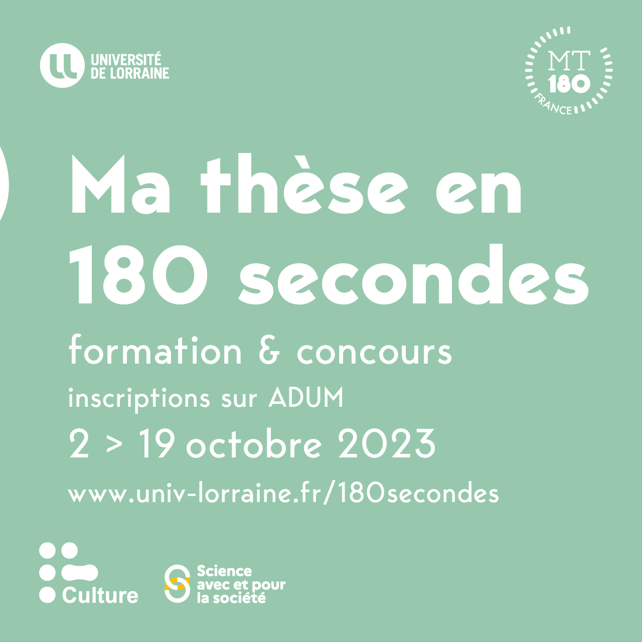 Les informations d'inscription et le dossier de présentation complet est à retrouver sur la page www.univ-lorraine.fr/culture/180secondes