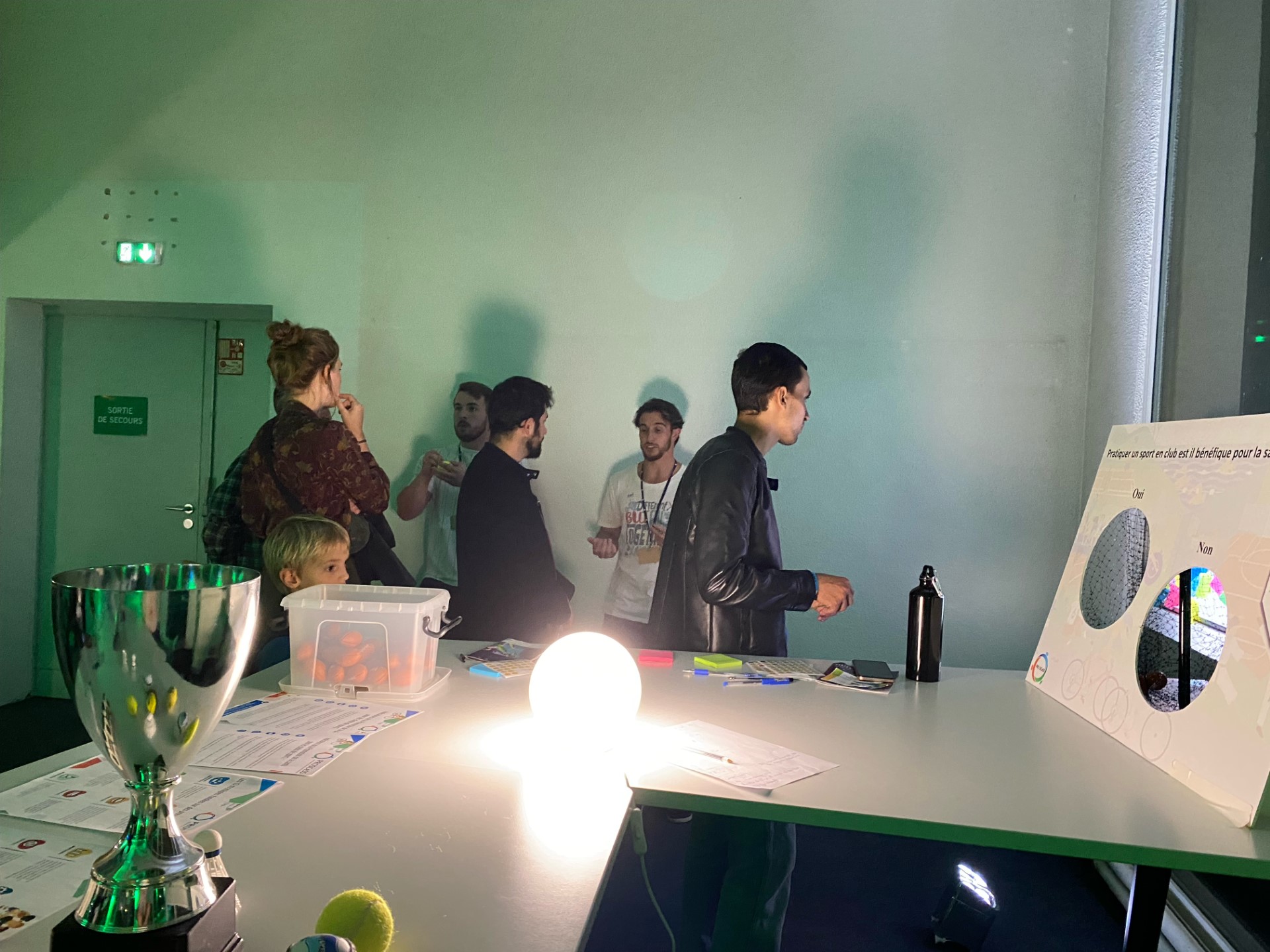 Aurélie Van Hoye, Kevin Barros et Benjamin Tézier du laboratoire APEMAC et des STAPS Nancy se sont rendus vendredi 29 septembre 2023 à Metz pour la Nuit des chercheurs. Au milieu d’ateliers de vulgarisation en histoire, agroécologie, psychologie ou droits, les 3 chercheurs ont questionné le grand public sur la thématique du club sportif promoteur de santé.