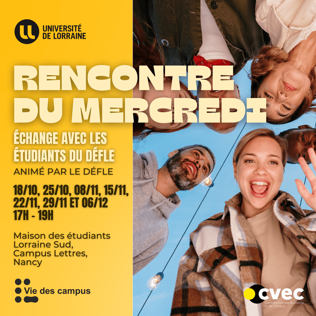Si la découverte, le partage et la convivialité sont des mots qui te parlent, viens participer aux Rencontres du Mercredi !