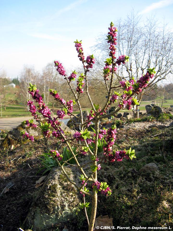 Le printemps approche à grands pas. Pour l’illustrer, nous avons choisi ce mois-ci de vous présenter une plante cultivée dans la rocaille consacrée aux Vosges et au Jura de la collection de plantes alpines : le Daphne mezereum.