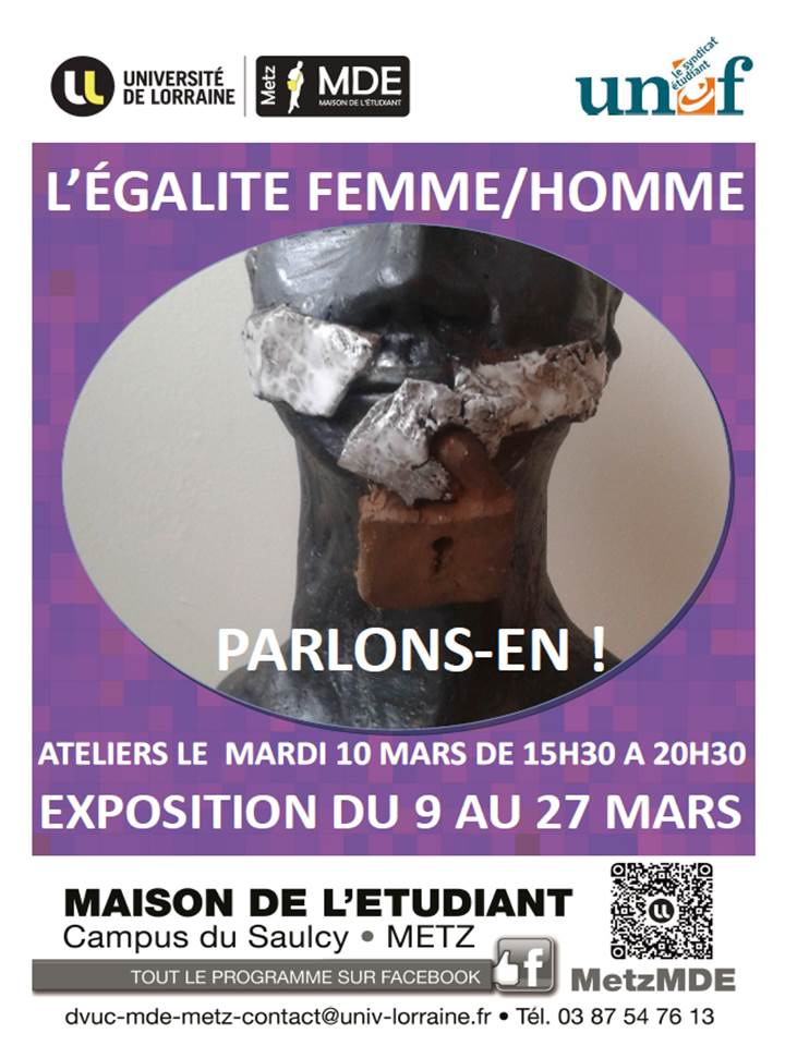 - Ateliers en tous genres tenus par les associations : lecture de textes féministes, préjugés et stéréotypes , femmes au Maghreb, traitement dans les jeux vidéos, lutte contre les différentes formes de violences…