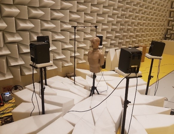 Le LEMTA et l’INRS seront en charge de la réalisation des mesures en sortie d’aides auditives. Ces mesures seront principalement réalisées dans la chambre anéchoïque de l’INRS, qui permet des mesures sans effet du local (pas de réverbération).