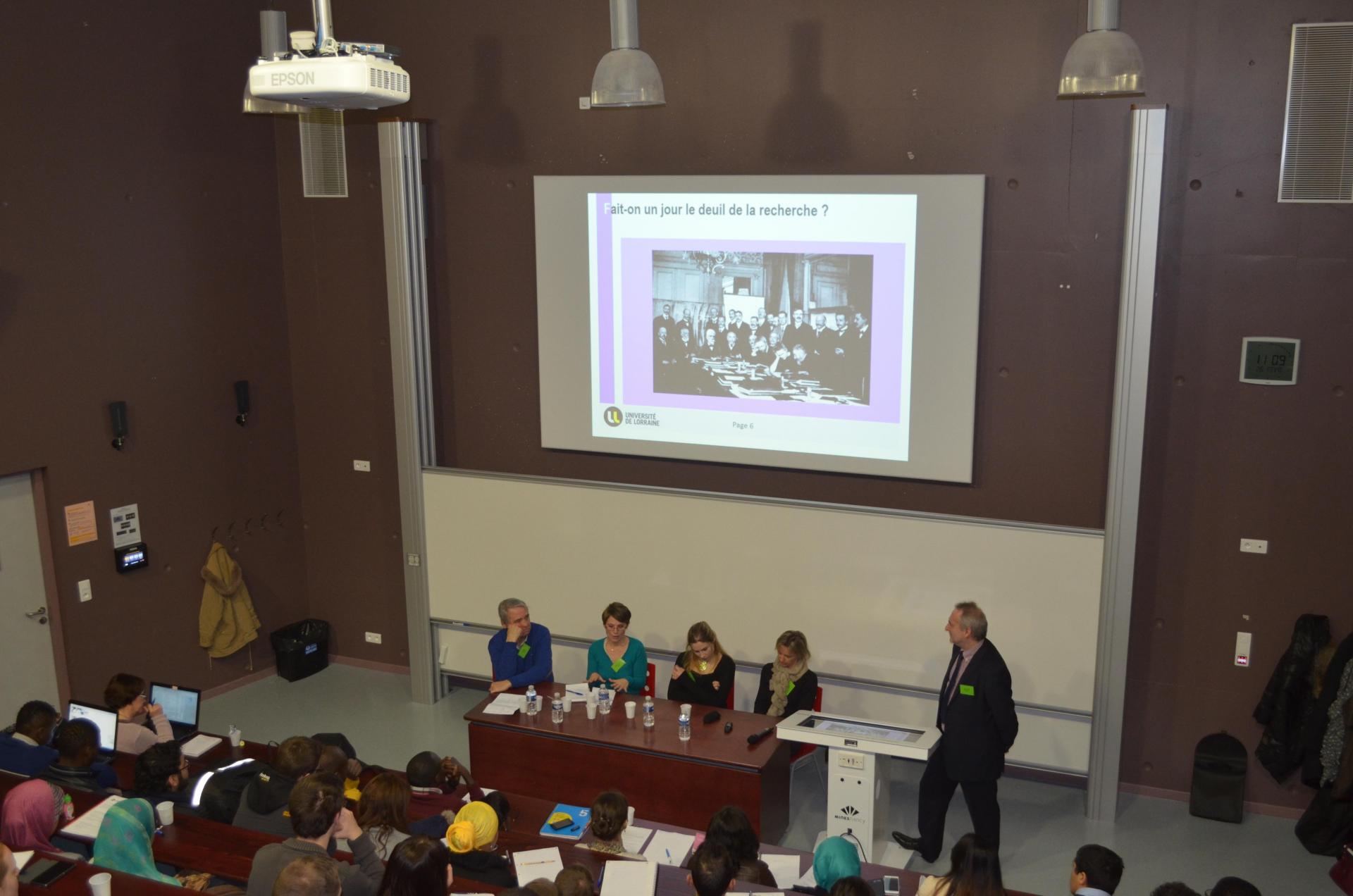 80 doctorants des différentes écoles doctorales ont été confrontés à plus de 40 intervenants et témoins : personnels de l’Université de Lorraine et des établissements publics à caractère scientifique et technique (EPST), représentants de l’association Bernard-Gregory (ABG), docteurs travaillant dans l’enseignement supérieur et la recherche, en entreprise ou ayant créé la leur, venant de Lorraine mais aussi de Paris, d’Allemagne, du Luxembourg et de Belgique. Les rencontres et présentations étaient organisées sous quatre thèmes : l’emploi public, salarié dans le privé, devenir son propre patron, travailler à l’international.