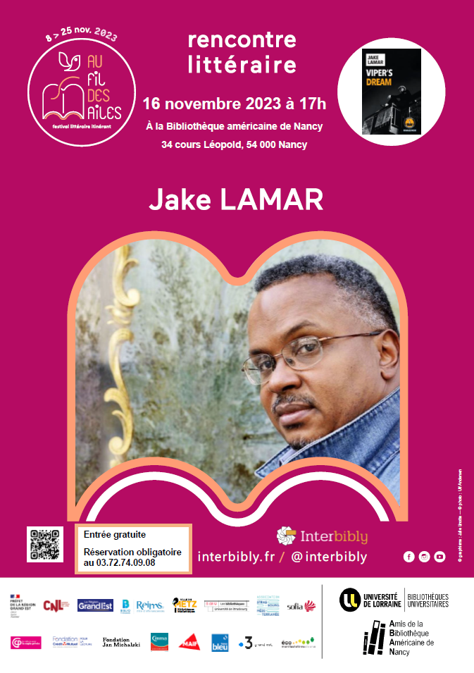 La Bibliothèque américaine de Nancy propose une rencontre littéraire avec l’écrivain américain Jake Lamar, le jeudi 16 novembre 2023 à partir de 16h.