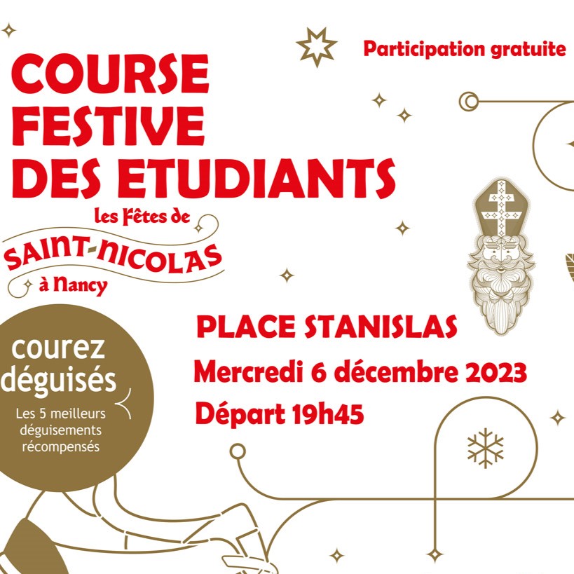 Rendez-vous le 6 décembre pour participer à la Course Festive des Étudiants à l'occasion de la Saint Nicolas, on vous attend nombreux et déguisés !